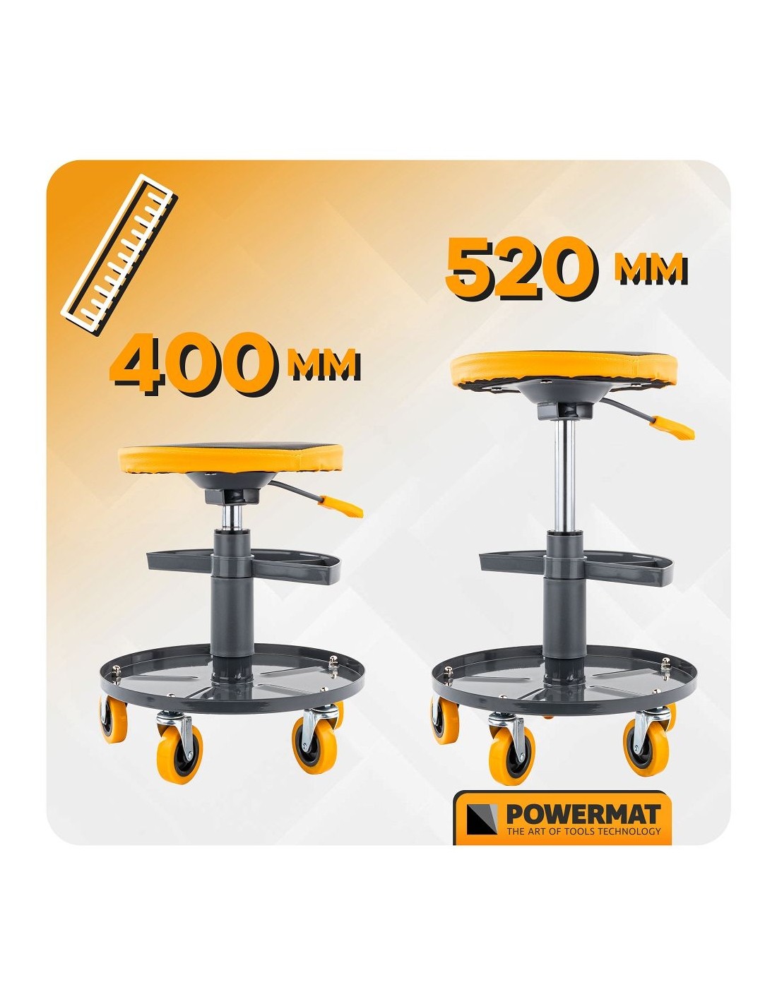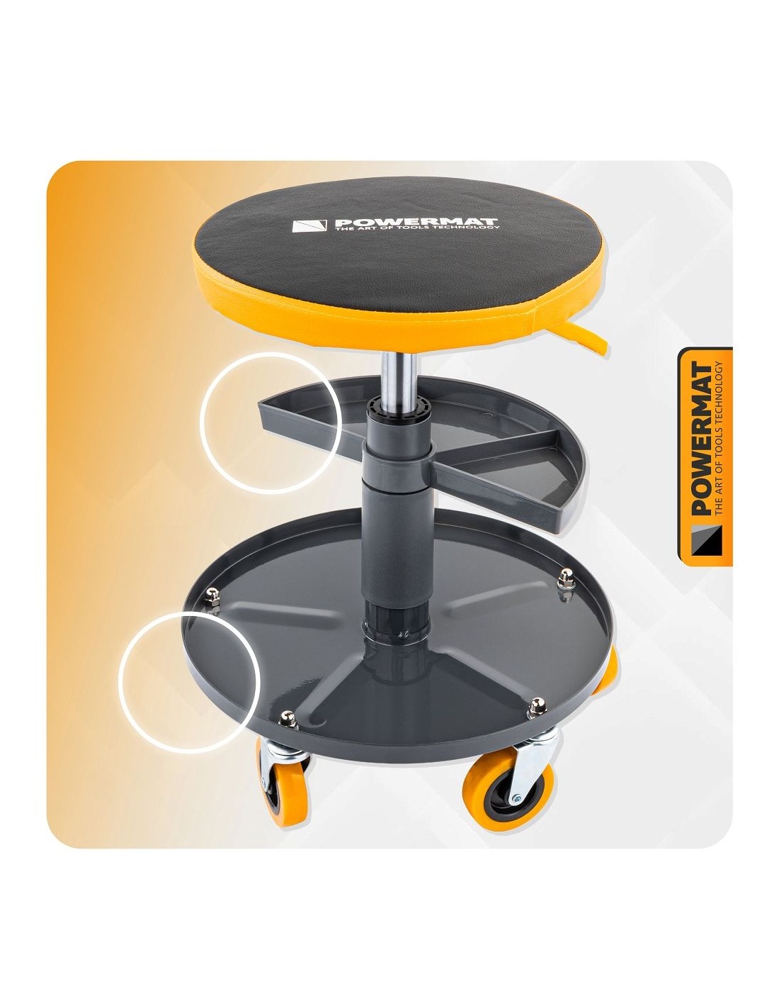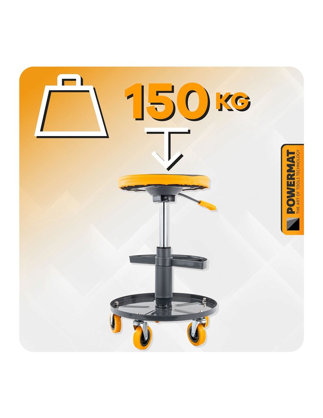 Powermat teleskopinė dirbtuvių kėdė – tai praktiškas, patogus ir mobilus sprendimas kasdieniams darbams. Reguliuojamas aukštis, kompaktiška konstrukcija ir funkcionalios detalės leidžia dirbti efektyviau ir patogiau.