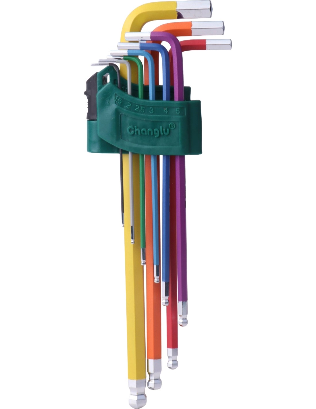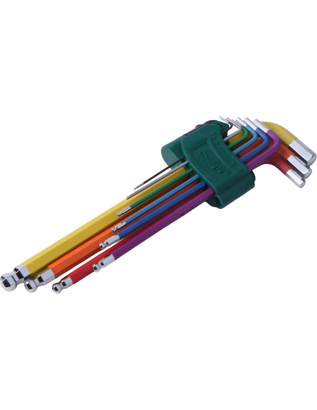 L-tipo šešiakampių vidutinių, raktų rinkinys 9vnt. (spalvoti)(1.5-10mm)