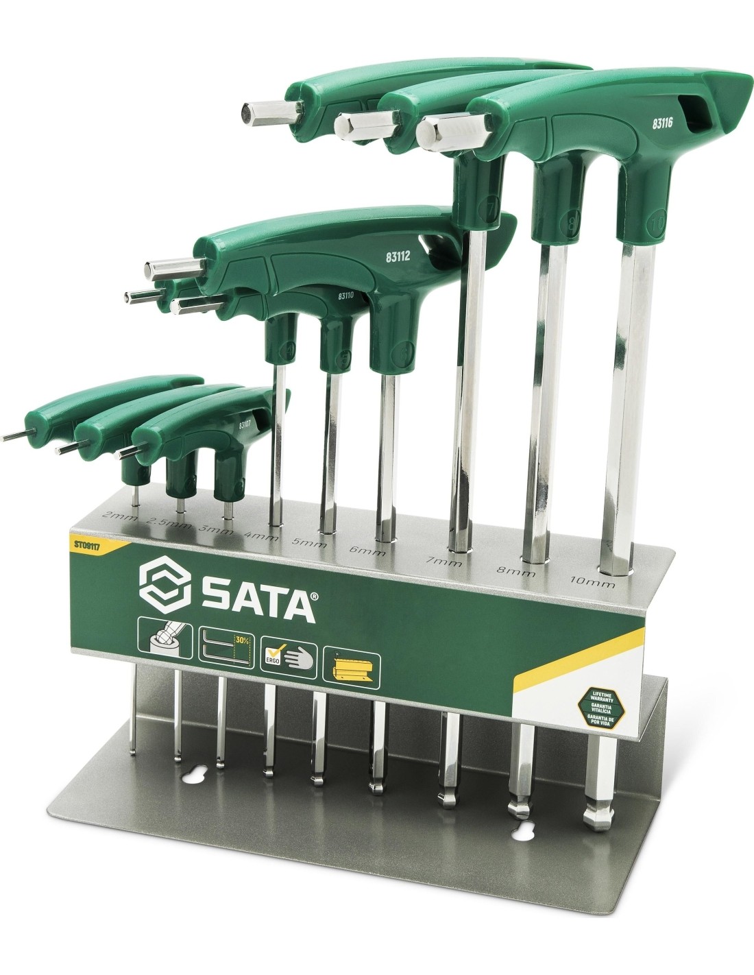T tipo šešiakampių raktų rinkinys (H-2 - H-10)(apvalia galvute) 9vnt.