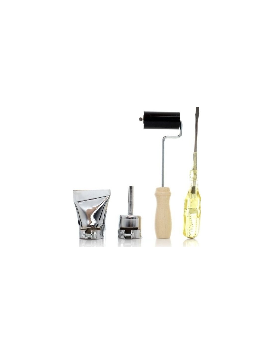 Į komplektą įeina: pistoletas, 2 keičiami antgaliai, atsarginiai šepetėliai, tvirtinimo priedai