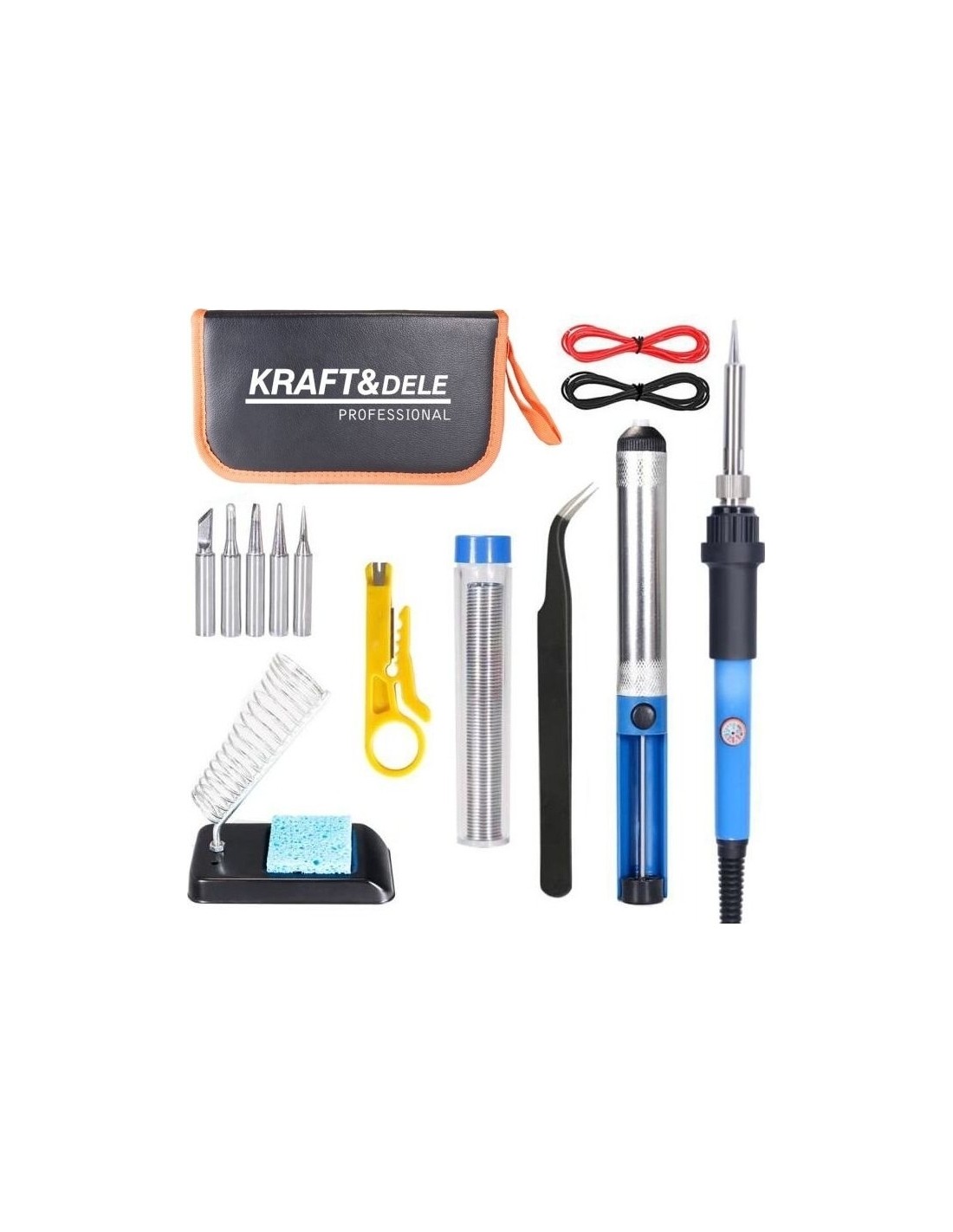 Šiame gaminyje yra viskas, ko reikia litavimui – skarda, keičiami antgaliai, pincetas ir daug kitų įrankių.