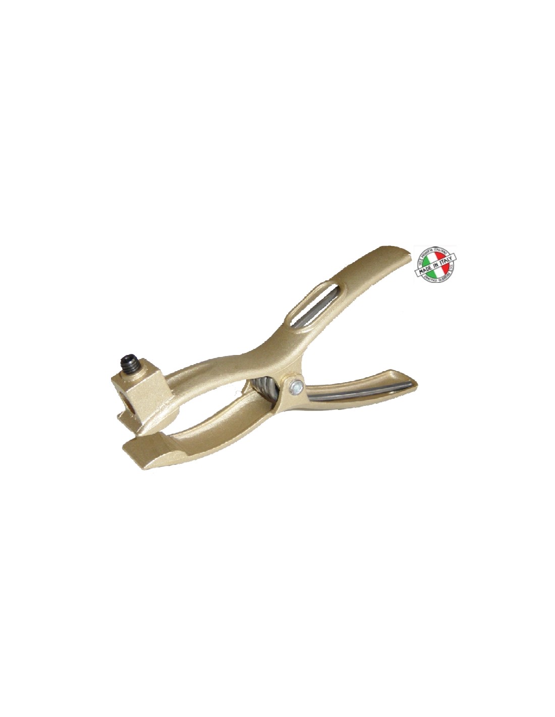 Įžeminimo gnybtas su tvirtais žalvariniais nasrais. Kabelis prijungiamas prie tinkamo lizdo ir pritvirtinamas varžtu.