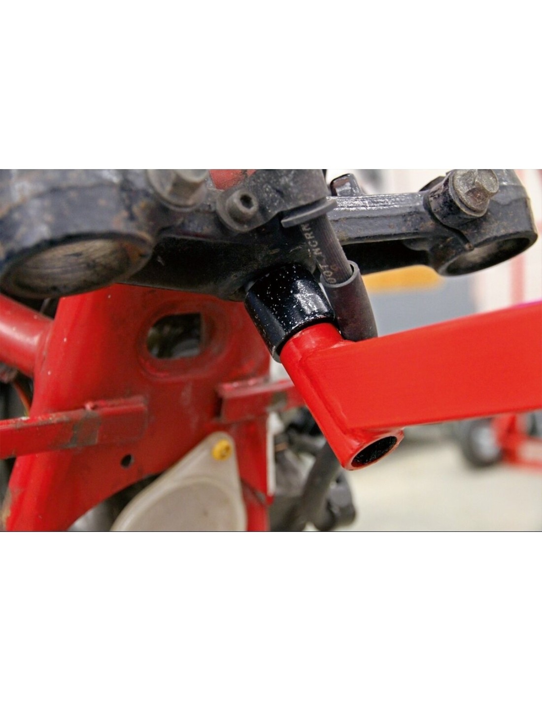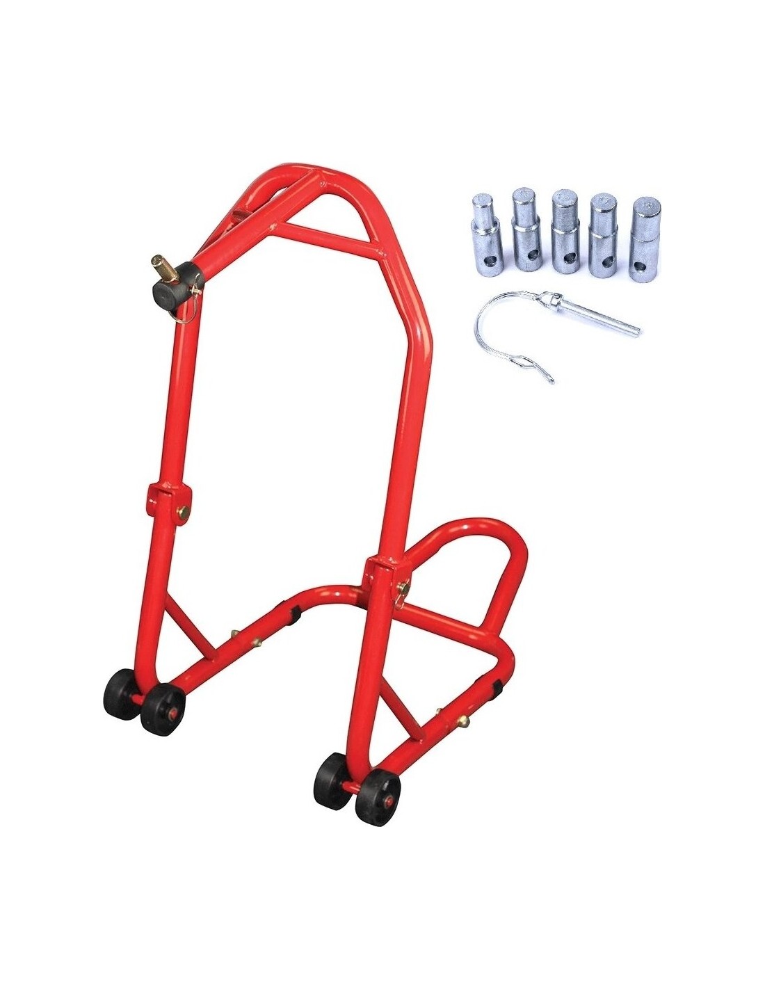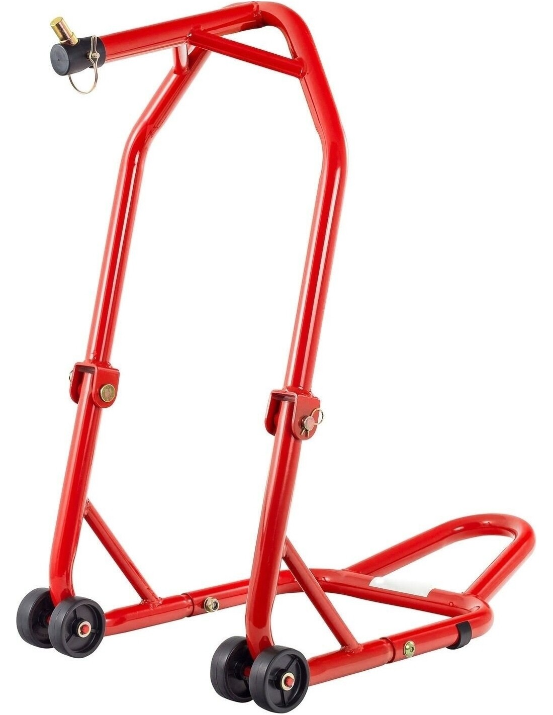 Priekiniu stovu, motociklas keliamas už vairo kolonėlės apačios, tokiu būdu užtikrinamas maksimalus priėjimas prie priekinės motociklo dalies, dėl ko gerokai palengvėja motociklo valymas, remonto ar priežiūros darbai