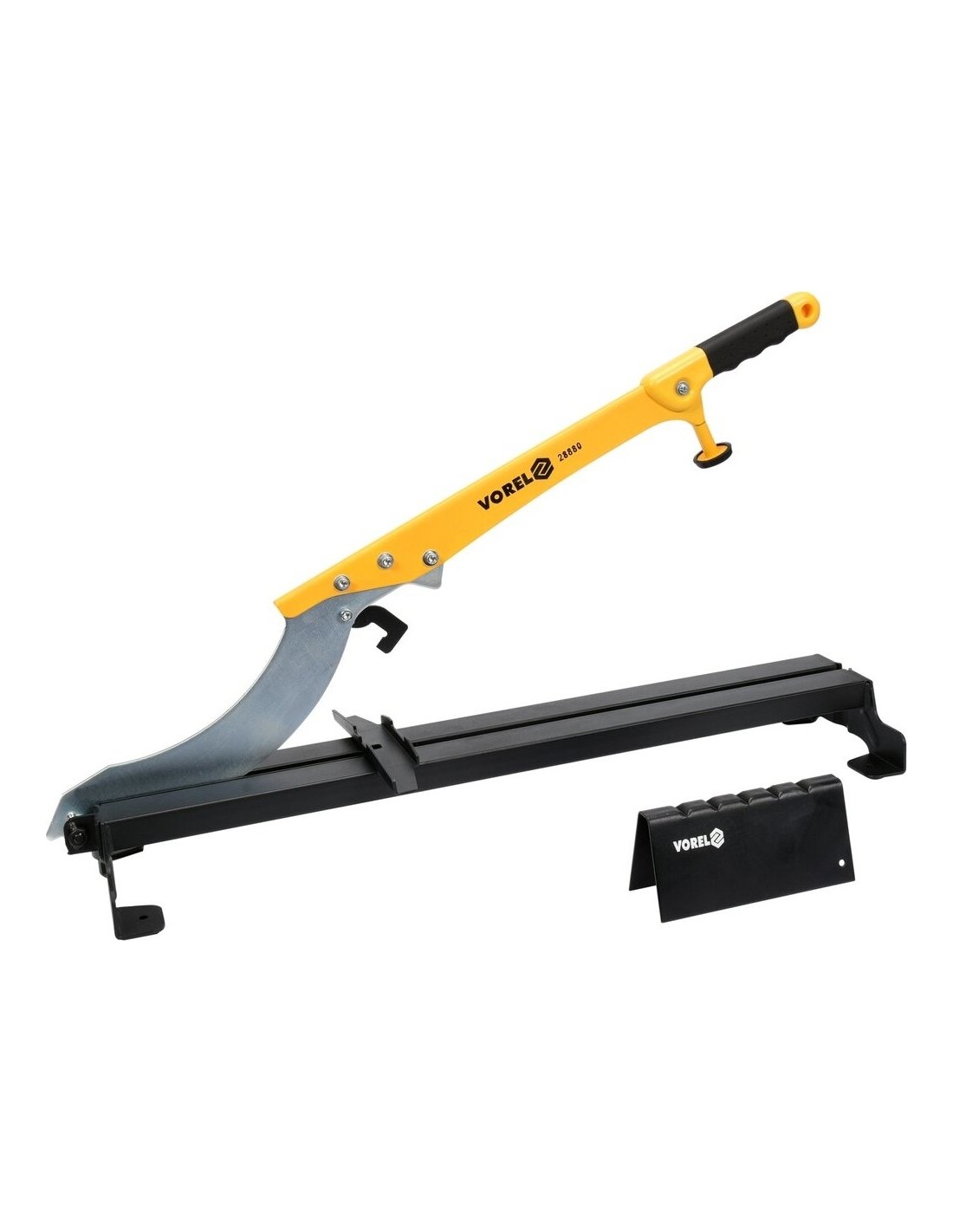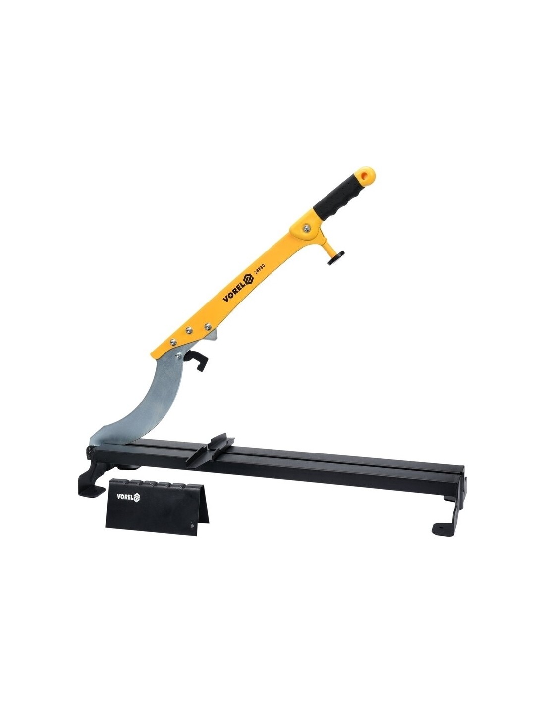 Giljotina grindų ir sienų laminuotų plokščių pjaustymui. Pagaminta iš storo lakštinio plieno. Konstrukcija yra išskirtinai standi ir atspari deformacijai, kurią sukelia stiprus spaudimas ant ilgos rankos. Tai garantuoja pjovimo lengvumą ir tikslumą.