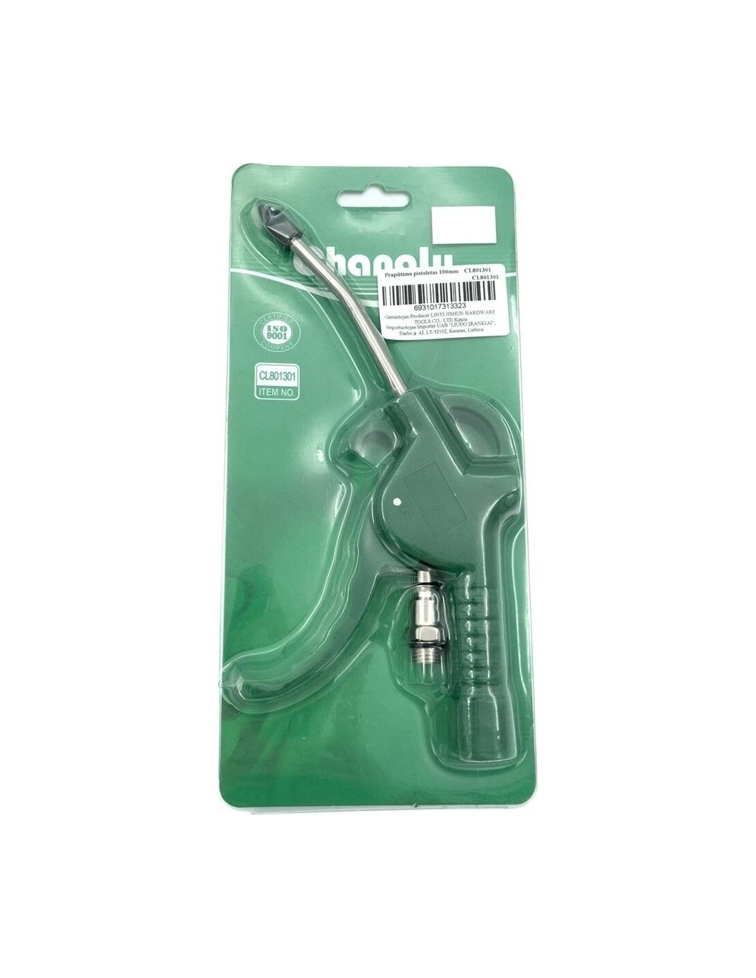 Ergonomiškai suprojektuotas pistoleto korpusas su kablio skylute.