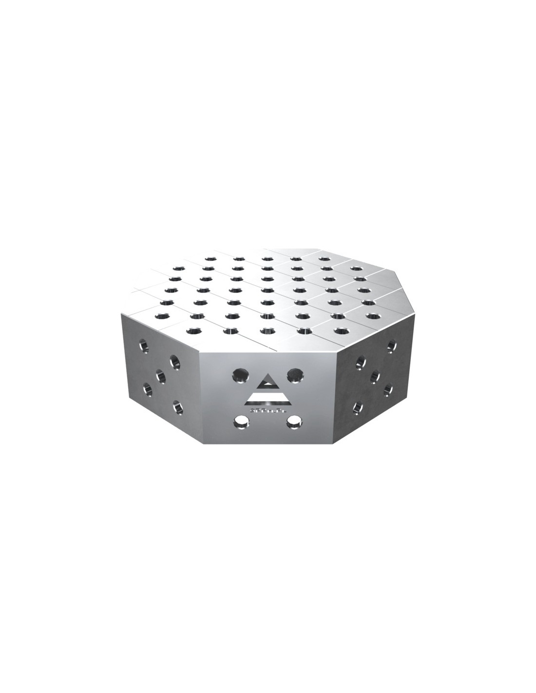 Dėl frezuotų ir nuožulnintų angų aštuoniakampiame stalviršyje įrankius montuoti ir nuimti lengviau – angos tiksliai atitinka įrankių geometriją. Tai mažina įrankių dėvėjimąsi, nes montuojant ir ardant nereikia didelės jėgos. Toks sprendimas yra vienas geriausių suvirinimo stalų rinkoje. Angų gamybos tolerancija: ±0,05 mm.