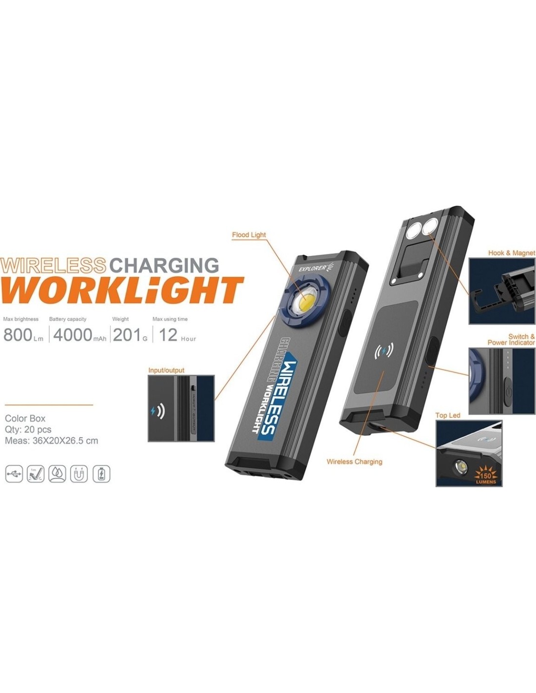 Prožektorius darbui COB LED (su belaidžio įkrovimo stotele)