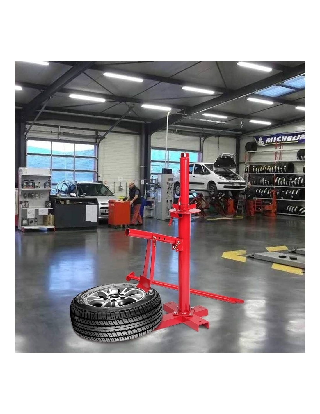 Patogios ir tvirtos rankinės ratų montavimo staklės, pagamintos iš kokybiško raudonai dažyto plieno. Puikiai tinka tiek namų garažui, tiek nedideliam autoservisui ar avarinėms situacijoms kelyje.