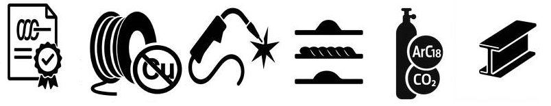 - Aukštas siūlės stiprumas – atitinka AWS A5.18 ER70S-6 reikalavimus.