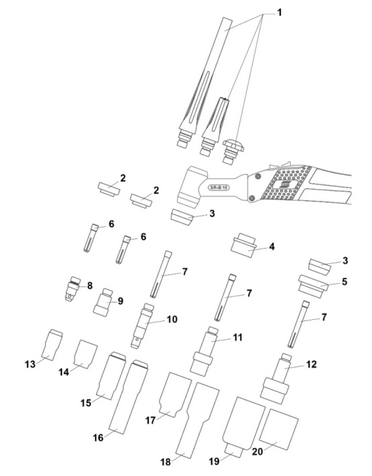 7 - canga Ø1,6 mm 0157123011, Ø2 mm 0700025681, Ø2,4 mm 0157123012, Ø3,2 mm 0157123013