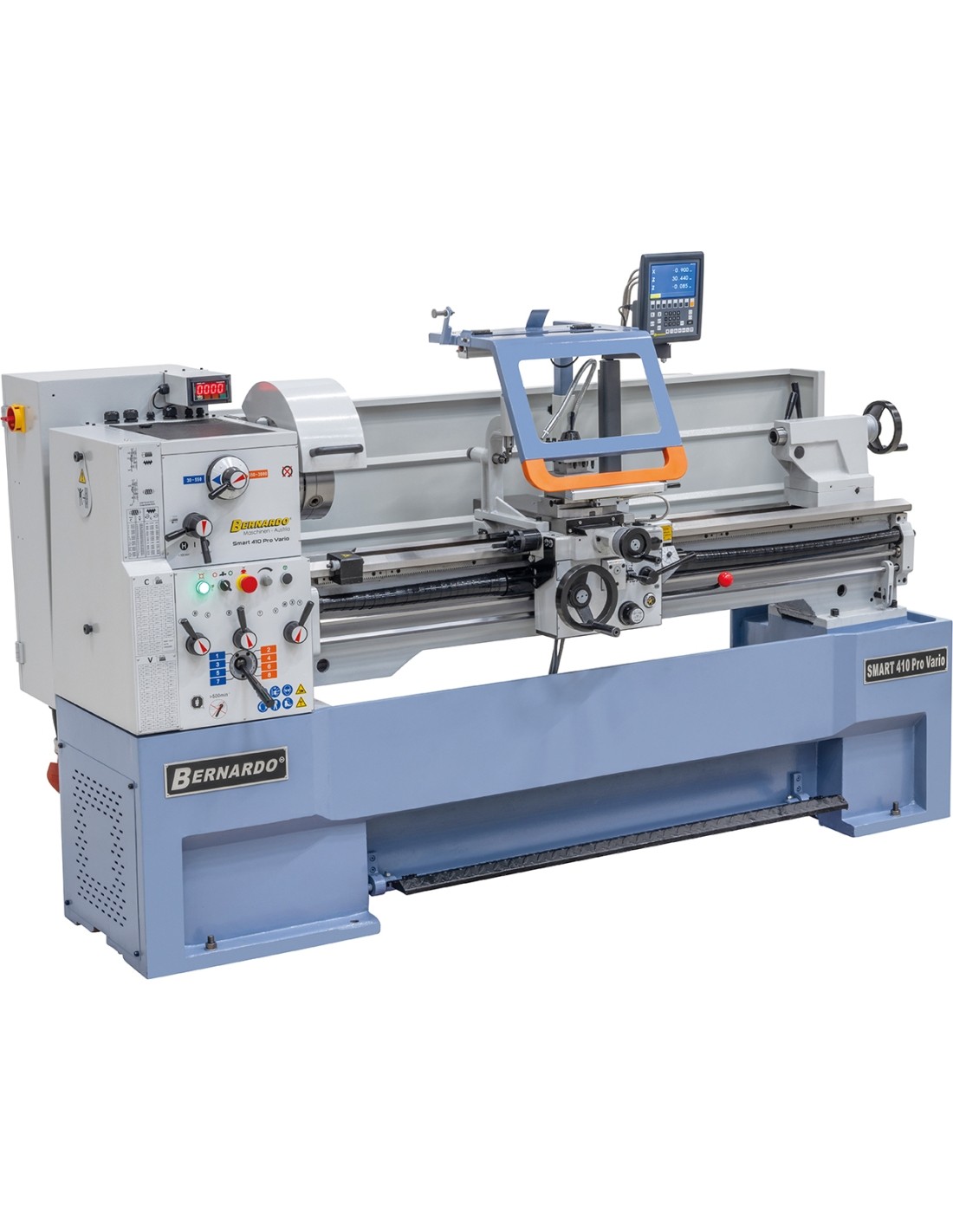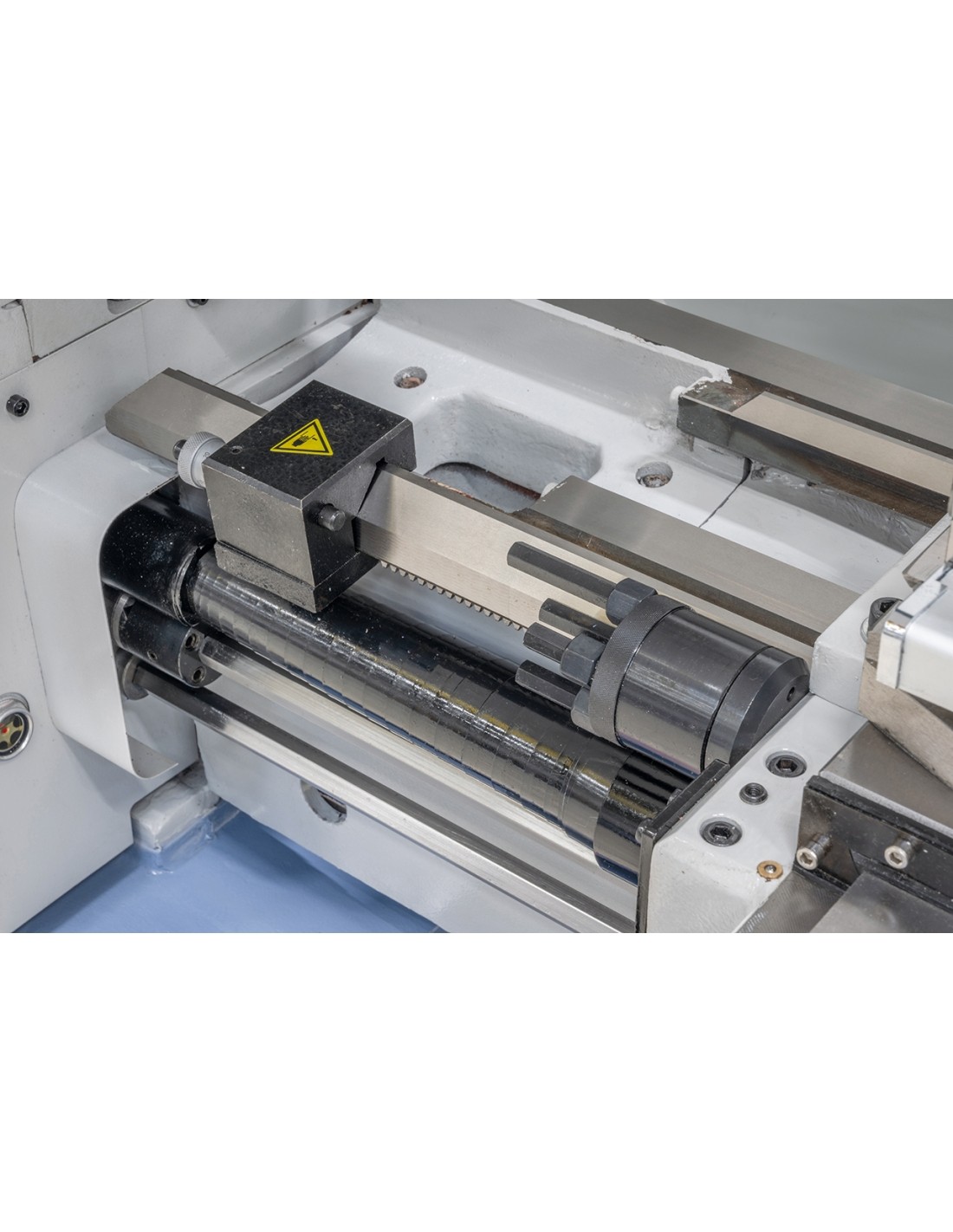 - Grey cast iron machine bed, inductively hardened and precisely polished