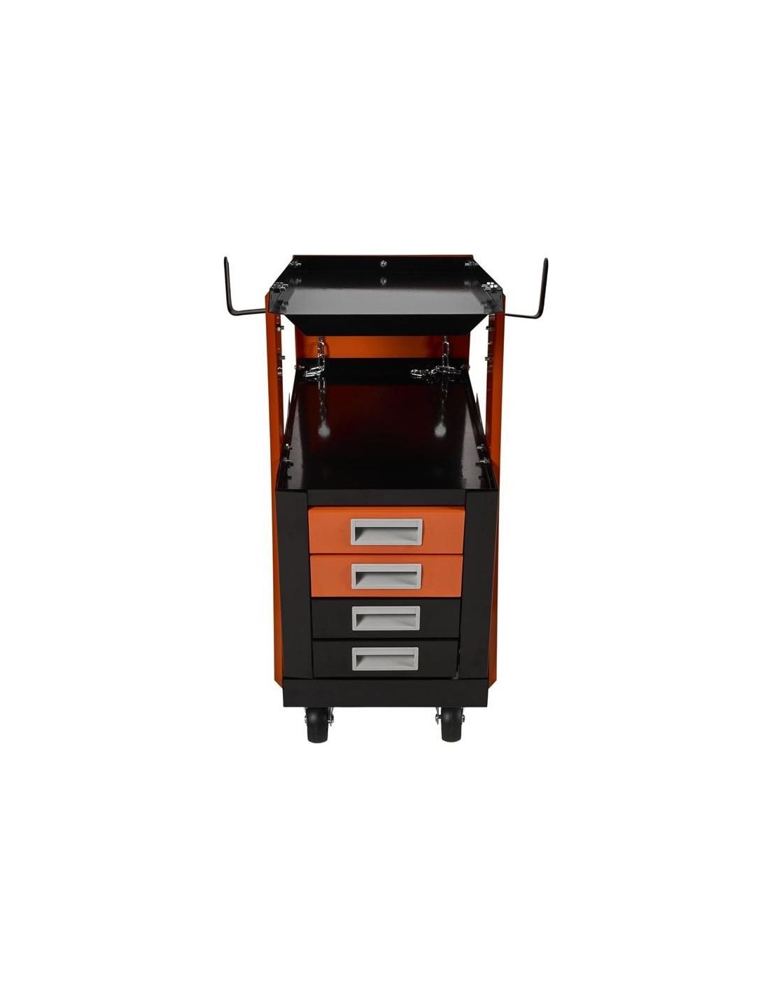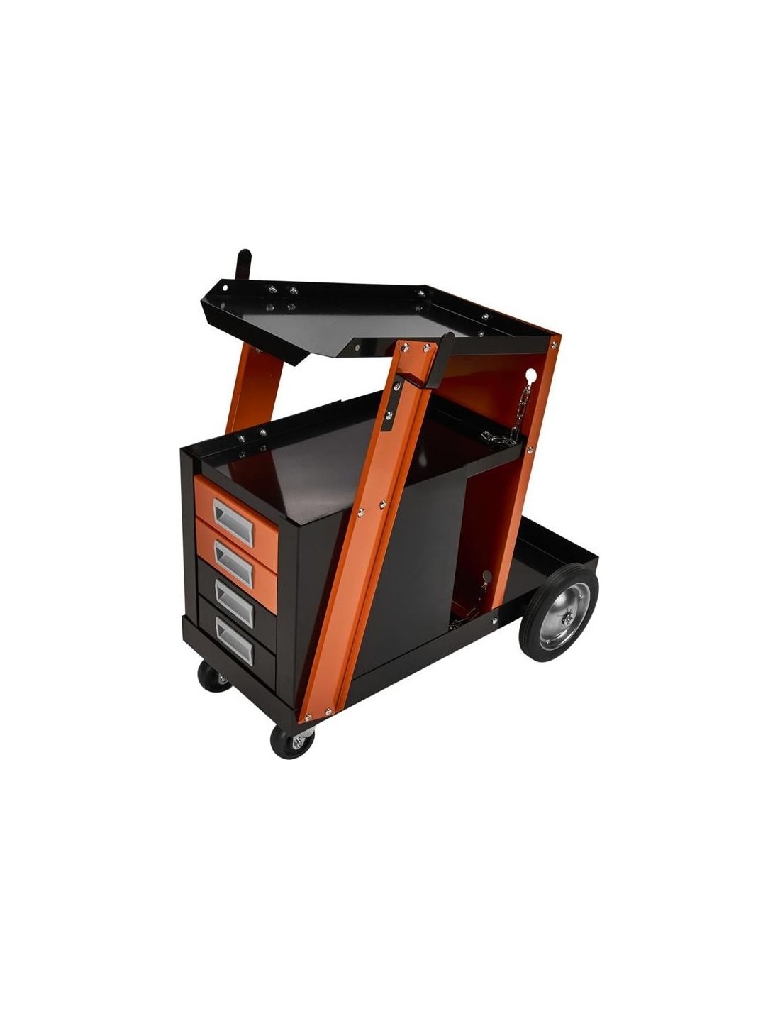 Vežimėlis puikiai tinka automobilių servisams, suvirinimo darbams, dirbtuvėms ar kitoms darbo vietoms, kur svarbus mobilumas ir tvarka. Jo konstrukcija užtikrina stabilumą net transportuojant sunkesnius daiktus, o ergonomiškas dizainas leidžia patogiai dirbti visą dieną.
