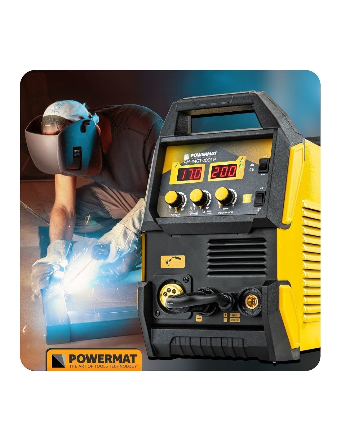 Ieškote universalaus, galingo ir patikimo suvirinimo aparato? Powermat PM-IMGT-200LP – tai modernus inverterinis migomatas, leidžiantis dirbti net keliais skirtingais būdais: MIG/MAG, MMA (elektrodais), TIG Lift bei FLUX (be dujų).
